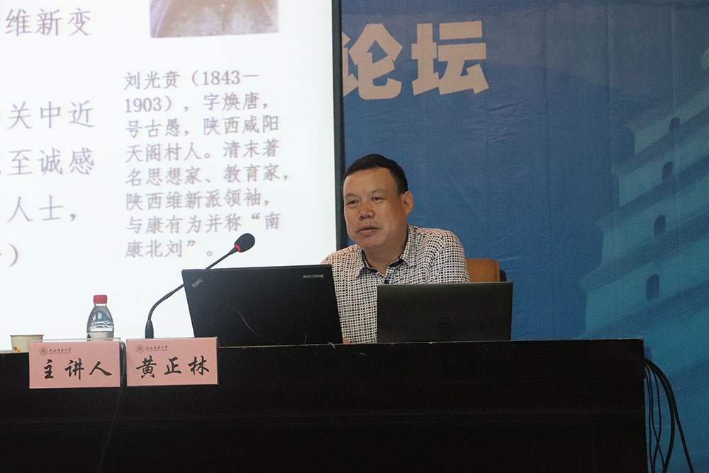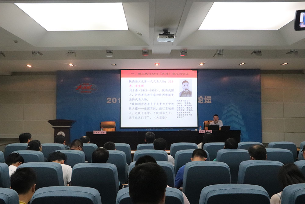 7月16日下午三点,2018 “西部大讲堂•历史学论坛”第二讲在陕西师范大学雁塔校区崇鋈楼一层学思堂举行。威廉williamhill体育教授、中国现代史学会副会长黄正林教授主讲,主题为:《< 共进>、共进社与马克思主义在陕西的传播》。威廉williamhill体育副院长李秉忠教授主持讲座,威廉williamhill体育何志龙教授等多位老师及上百名学员参加了本次讲座。