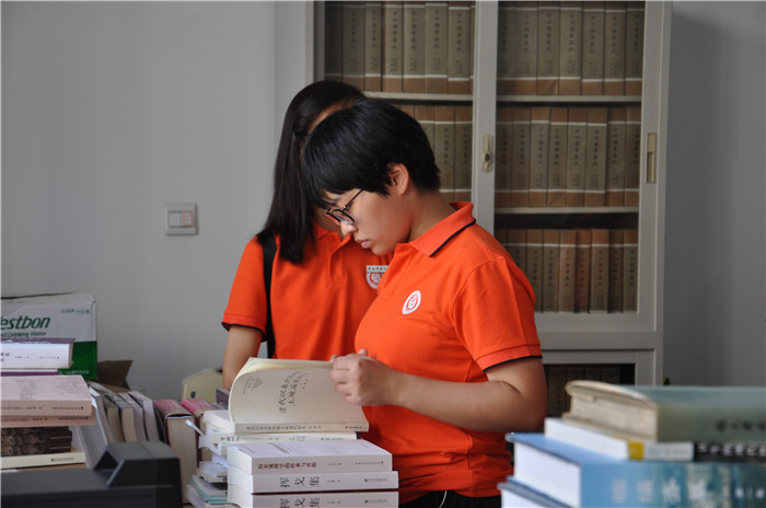 在庄严的国歌声中,开学典礼正式开始。4500余名师生齐唱《我和我的祖国》,用激昂嘹亮的歌声为我们伟大的祖国成立70周年献上最真挚的祝福。我校领导老师对2019级本科生表示最热烈欢迎及衷心祝福,并教导新生们“把自己的‘小我’融入到祖国的‘大我’之中,将爱国之情、报国之志融于中华民族伟大复兴的事业当中。” 开学典礼结束后,我院2019级本科生在学生会同学的带领下整齐有序地参观了学院过刊阅览室、古籍阅览室等图书资料库,对我院的历史、藏书分布状况等有了初步了解。面对年代较久,保存较好的文献古籍新生们满怀好奇的眼光,轻轻地翻阅,在古朴的书香中流连忘返。