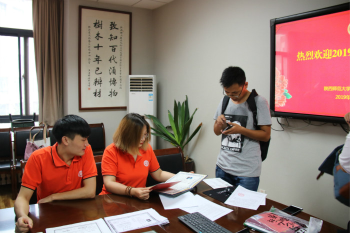 9月9日早晨,新生陆续来到学院文汇楼C段217会议室办理相关报到手续,学院研究生干部们分工合作,有序地为新生办理入学手续,学院还为2019级新生精心准备了迎新大礼包,除学籍卡与研究生证外,还配有学校校徽及学院院服,为新生送去温暖与祝福。