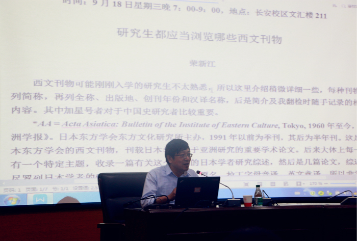 荣新江教授详细介绍了一些重要的西文刊物,每种刊物荣教授都先列出其简称,再列其全称、出版地、创刊年份和汉译名称,随后再详细介绍该刊物的相关内容。荣新江教授通过对一些西文刊文的讲解告诉同学们,在翻阅杂志时,要学会区分杂志,分为必须翻阅的杂志和一般性浏览的杂志两类,不可盲目阅读,对于自己专业的“核心刊物”,必须要详细地翻阅,如果能够一直阅览这些重要的“领首”期刊论文,就能够跟上学术潮流,站在学术的最前沿。最后,荣新江教授鼓励同学们多读书,在读书的过程中多思考,善于发现问题。