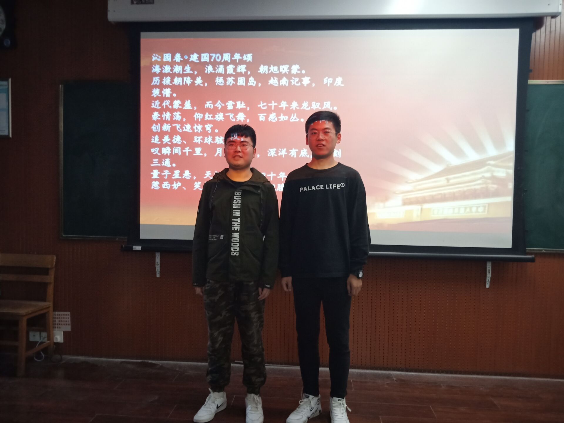 2019级历史学类非师二班团支部的朗诵会,在班长王晨睿、副班长胡箫南和团支书冯源的组织下如火如荼地开展。活动伊始,胡箫南同学介绍了祖国七十年的艰苦奋斗的历程。七十年栉风沐雨,七十年披荆斩棘,中华民族经历了从站起来,富起来到强起来的伟大飞跃。新中国成立时期先辈们的坚定信仰,让同学们感动;改革开放时期弄潮儿的创新精神,让同学们备受鼓舞。