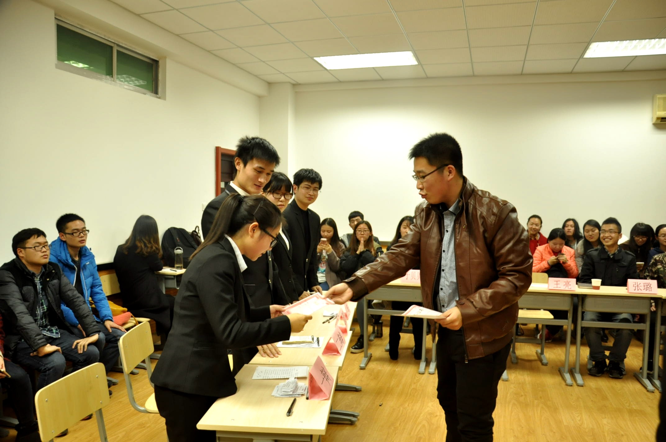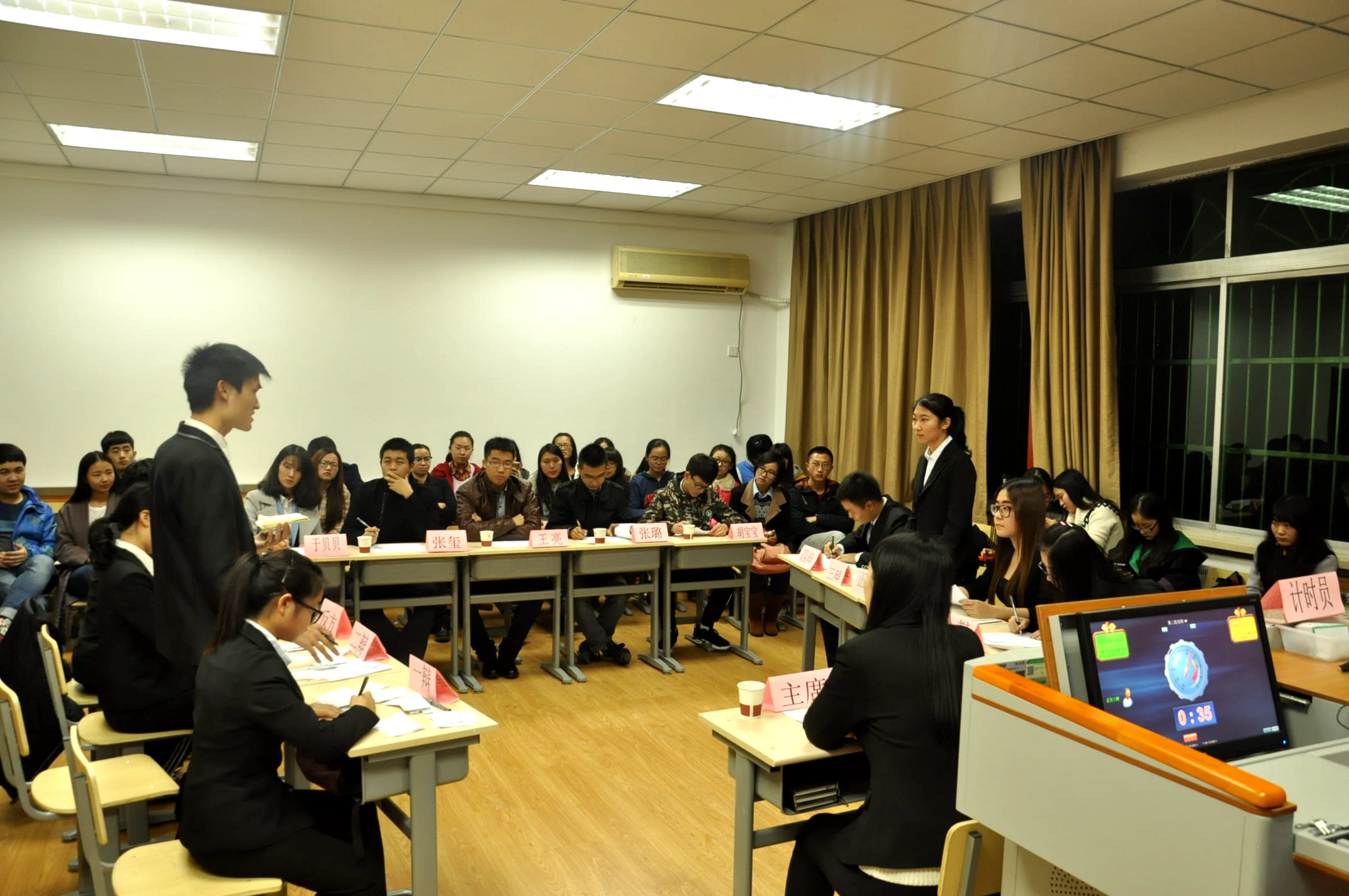 2015年11月29日晚7:00,威廉williamhill体育辩论赛决赛在文渊楼3106教室顺利举行。本科生辅导员王亮、马列理论读书社、法学会及学生会部分同学代表担任了本次辩论赛的评委。