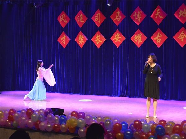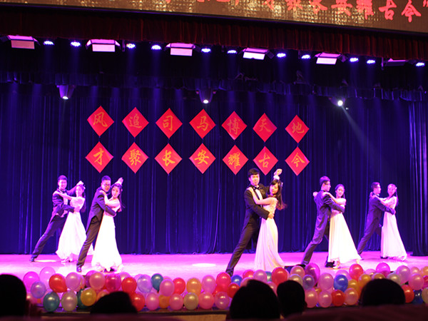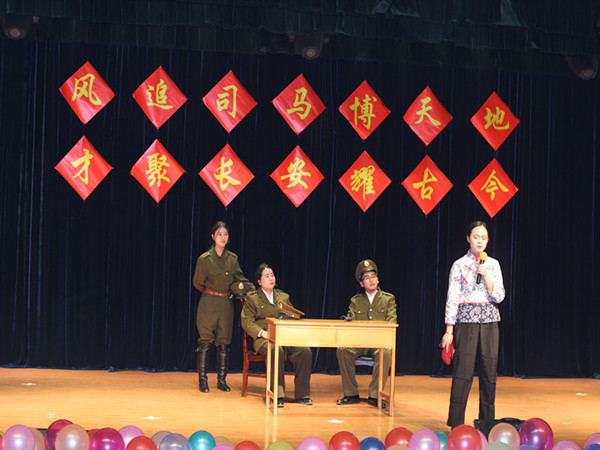 颁奖过后,我院几位青年教师带来了诗朗诵《青春无悔》,他们声情并茂的朗诵出了对教师职业的热爱。接着2015级学科教学的研究生们带来了历史剧《戏说科举》,讲述了一位考生不学无术却最终被录取的事迹,讽刺了当今社会上的不良之风。随后晚会进入第二个抽奖环节。抽奖环节过后,白建才老师为大家带来了歌曲《沁园春•雪》,让大家感受到白建才老师在教学、科研之外的独特魅力。随后2014级历创班的同学带来了历史剧《被撞击的现代人》,幽默诙谐的剧情再度将晚会的气氛推向一个新的高度。最后,汇演在2012级部分同学带来的舞蹈《爱的华尔兹》中圆满落下帷幕。
