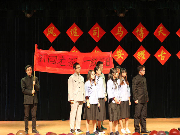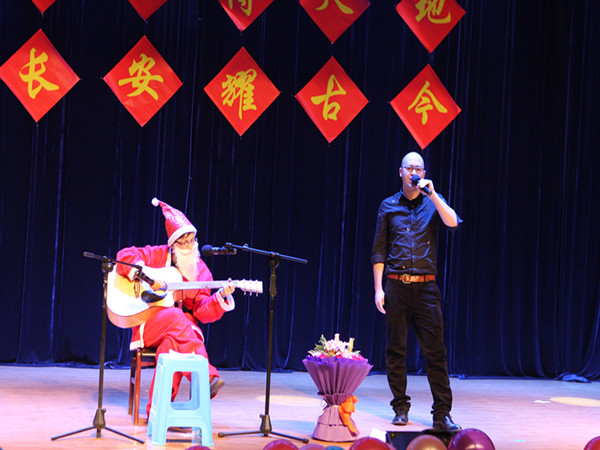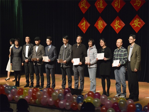 抽奖环节过后,我院的外籍教师约翰、凯瑟琳带来了三首英文歌曲。2013级古典文献班的李舜、胡议丹为大家带来了相声《批三国》,他们妙趣横生的语言惹得满堂观众捧腹大笑。随后由2015级中国近代史研究生带来了历史剧《捉蒋记》,演员们在舞台上慷慨激昂的表演感染了场内的观众,仿佛把大家带回了几十年前那个动荡的时代,激发了我们的民族自尊心。接着晚会进入第二个颁奖环节,由何志龙院长和丁虹书记颁发2015年春秋最受学生欢迎的教师和最佳网络教师奖。