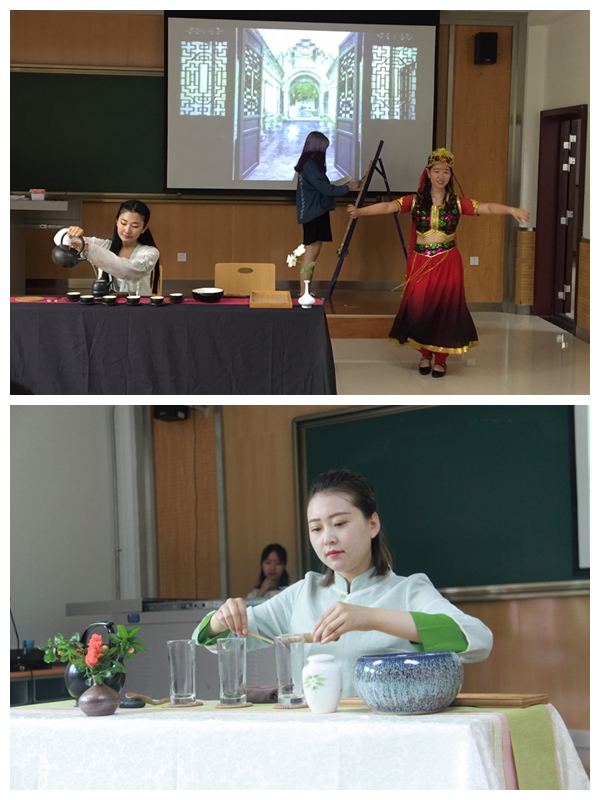 经过初期选拔和培训,此次有七组选手展开角逐。选手们通过茶艺表演,将茶和故事完美结合,或有青衣白裙的少女因茶而逢知己;或有携友登高共品茶的闲适;或有梦回西域,载歌载舞共品茶的欢愉。经过激烈的角逐,我院2015级于子清、杨丽莎、闫梦圆三位同学作品《茶香飘飘西域缘》入围陕西省决赛。最后,评委老师倪正宇对所有参赛组总结点评,希望入围选手在后期省赛中取得更好成绩。