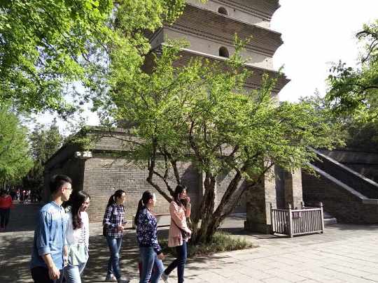 继首站陕博之后,青协的馆际交流活动转战西安博物院。4月16日上午,来自陕博、半坡、碑林三支兄弟队伍的十余位志愿者在西博队长田钟灵的带领下前往西博。到达后,西博志愿者武笑迎,赵璐,王雪纯为他们进行了精彩详尽的讲解。此次讲解内容除去博物馆内部的“千年古都”和“帝都万象”这“两大主线、三大展厅”之外,还包括了西博特有的外景部分——小雁塔和荐福寺园林景区。参观过程中,同学们积极发问,负责讲解的志愿者也一一进行解答,前来参观的志愿者在了解西博的同时也学到了更多的文物及历史知识,双方在交流志愿服务经验的过程中也密切了队伍之间的联系。