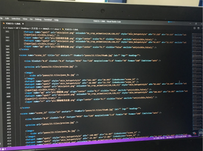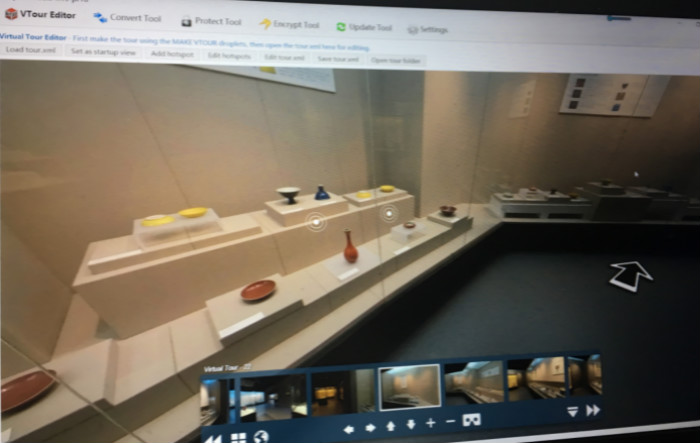 建设全景虚拟馆首先需要做好文案工作,在郭艳利老师的指导下,同学们首先完成了对各展厅重点展品信息的梳理,对展线有了清晰的认知。同时,全景虚拟馆区别于传统的博物馆,其中涉及大量计算机技术的使用以及代码的编写及修改,对于文博专业的同学来说也是极大的挑战。同学们在张光伟老师的指导下"恶补"了不少编程知识,从最初的分工、制定计划到后期的拍摄、制作,一次又一次地与博物馆人员协商,拍摄过程中光束的选择,文本的修改编辑,解说词的录制,对文案的精心修改,才有了全景虚拟馆的初步成果。在当前的疫情下,同学们无法回到学校,但他们学习的心却没有因为这次疫情有些许的懈怠。文博专业的同学们即便已经基本完成了虚拟博物馆的制作,在家中也仍然进行着相关操作的复习,并观看各大博物馆网站的虚拟展览,从中学习相关的知识和技术,力求精益求精,完善我校教育博物馆的全景虚拟馆。