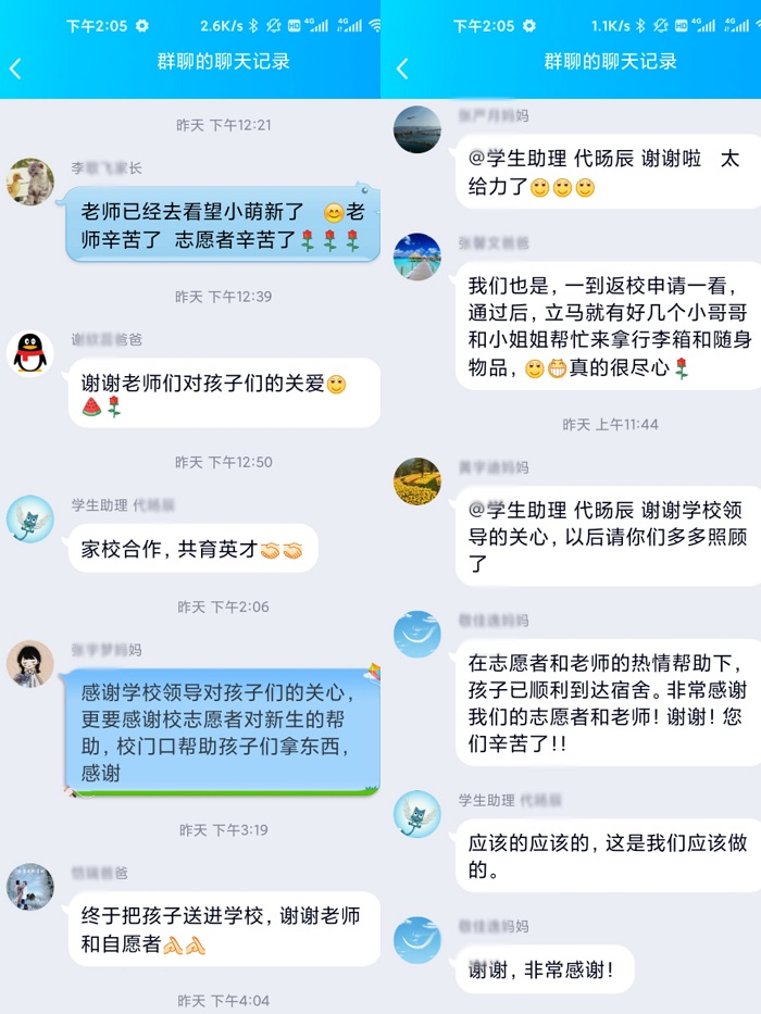 学生教育不是学校或家庭一方的独奏,而是家校共同演奏的乐章。学院十分重视与家长的沟通和交流,在录取结果公布伊始,便建立QQ新生家长交流群,答疑解惑、宣传政策。负责学生工作的党委副书记程蕾与辅导员师瑞青,公布自己的联系方式和办公电话,建立家校交流渠道,形成育人合力。