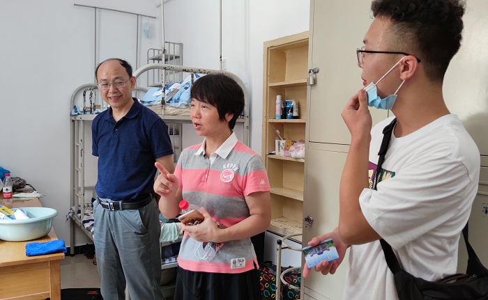 12日中午,我院党委书记杜海斌、党委副书记程蕾、副院长曹伟、学院行政秘书涂斌与辅导员师瑞青、鲁旭萌、刘旭辉等一行人,来到学生宿舍看望新生。老师们向同学们询问宿舍住宿情况,交流入校体验,分享大学生活的经验和趣事。师生在其乐融融的氛围中培养了感情、拉近了关系。
