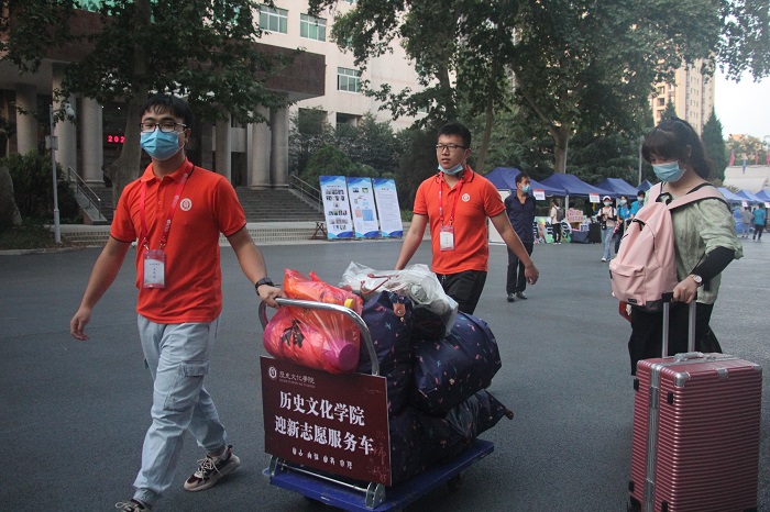 不同年级之间的互帮互助一直以来都是我院的优良传统。几位格外热情的志愿者同学,当日的微信步数甚至达到了五万余步,约等于40公里。充分展示了史院学生的优良作风。让大家都感到欣慰的是,在学长学姐们志愿精神的感染之下,有不少新同学在放下行李之后不久便自愿加入到迎新的队伍之中,一起为同学们提供力所能及的帮助。2020级的同学们,已经开始接过学院精神传承的接力棒。