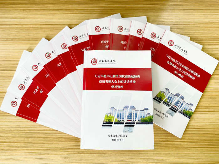 会议伊始,为更好开展理论学习,党委给所有参会人员发放了学院党委印发的《习近平总书记在全国抗击新冠肺炎疫情表彰大会上的讲话精神》学习资料。