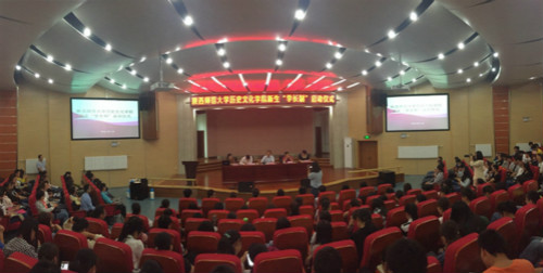 9月24日上午,学院新生“学长制”启动仪式在雁塔校区逸夫楼报告厅举行。副校长党怀兴,教务处副处长石洛祥、学生处副处长曲洪刚、学院党委书记杜海斌、副院长郭妍利等出席开幕式。学院2014级和2015级的30名学长、2016级221名新生,以及学院团委书记柴永昌、辅导员洪海安、王欢、孔祥辉、杨玲玲等共同参加了启动仪式。启动仪式由学院副院长郭妍利主持。