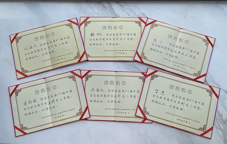2020年7月21日,第十六届“中国古文献学奖学金”评奖结果已正式揭晓。我院文献学专业共有6名学生分别获得二、三等奖。本科生荣获二等奖2名,为2016级刘海杰和2018级杨帆;荣获三等奖3名:为2017级珂瑶、郑伟凤和2018级丁朵。2018级文献专业硕士研究生张平荣获三等奖。