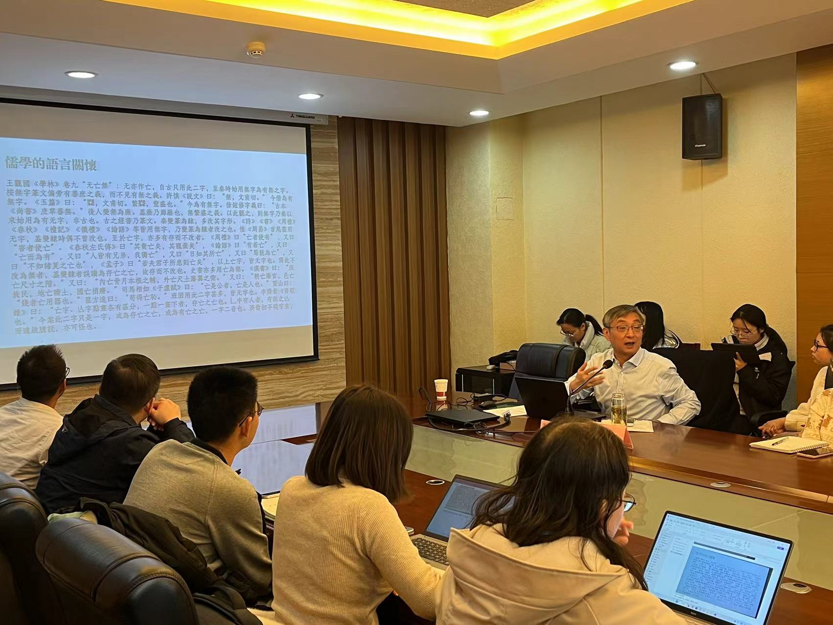 在互动环节,周晓薇、王雪玲、张宗品、翁彪、吕东超等老师与于亭教授就相关问题进行了热烈讨论。于亭教授的讲座风趣幽默,所展现出的学术关怀与理论素养,提示我们文献研究亦不能偏废理论学习,不能自我阻断文献研究的诸多可能。