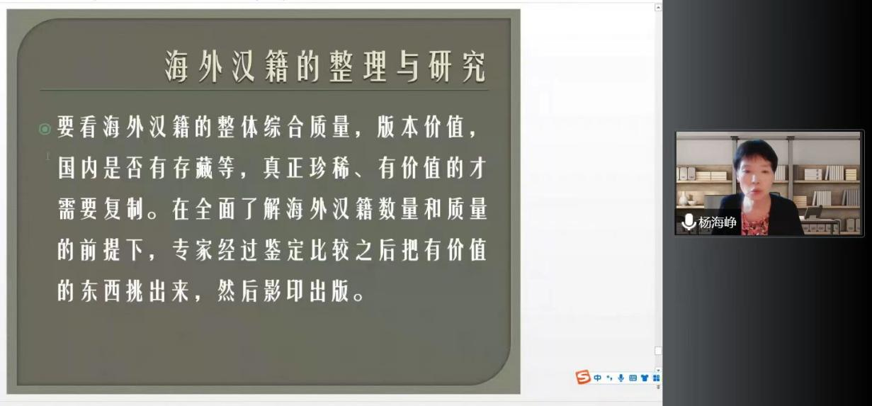 9月20日下午,集贤讲堂第365讲在文汇楼C段217会议室及线上平台同步进行。北京大学中文系杨海峥教授做了题为《书籍之路——“汉籍”的外传与回归》的学术讲座。古籍所王雪玲老师担任主持人,黄寿成、张宗品、吕东超、翁彪老师与谈,学院师生及校外人员近300人参加此次活动。