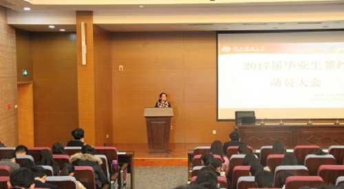 11月30日上午10点,威廉williamhill体育在文汇楼C段211报告厅举行2017届毕业生就业动员大会,学院党委书记杜海斌、副书记程蕾、毕业班辅导员杨玲玲以及200余名2013届本科毕业生、研究生毕业生参加了动员大会,会议由杨玲玲主持。