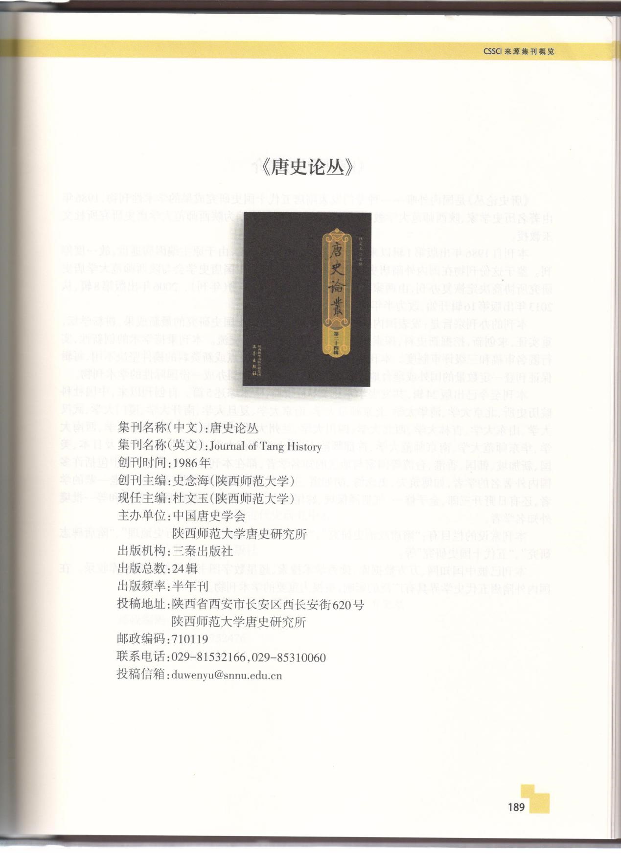 《唐史论丛》是由陕西师范大学唐史研究所(隶属于威廉williamhill体育)与中国唐史学会联合主办的学术集刊,连续被南京大学中国社会科学研究评价中心评定为CSSCI来源集刊(2012-2013)(2014-2016)(2017-2018)。目前已被选入南京大学中国社会科学研究评价中心编辑出版的《CSSCI来源集刊概览》一书(2018年4月)。