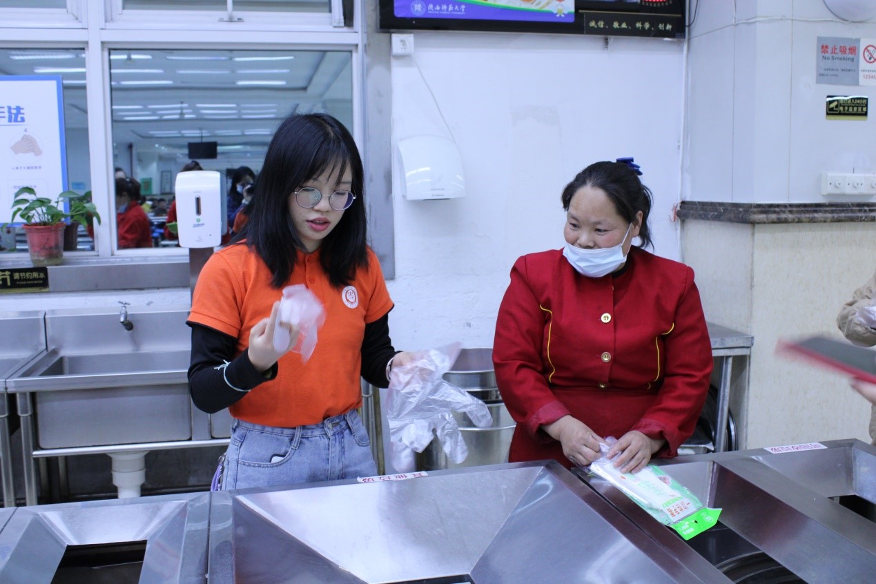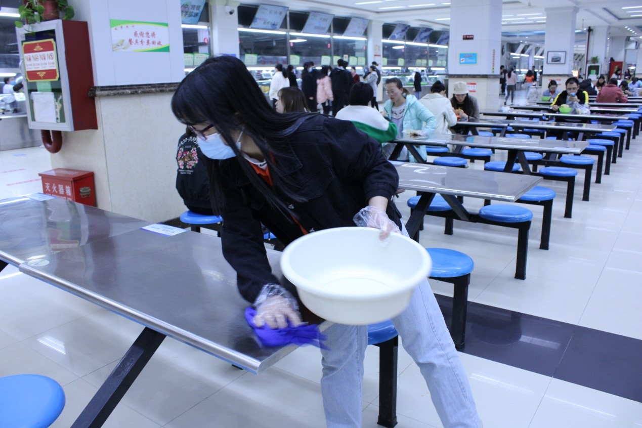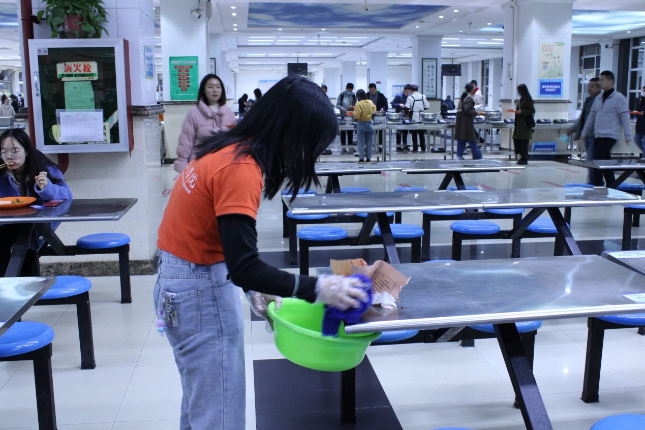 活动分为中午、下午两个时段,志愿者们自由选择其中一个时间段服务同学,传递雷锋精神。从午到晚,志愿者们身着院服,穿梭在餐厅的每一个角落,帮助餐厅的工作人员清理餐桌、收拾餐具,为营造一个良好有序的就餐环境而挥洒汗水,成为春日校园中一道靓丽的风景线。