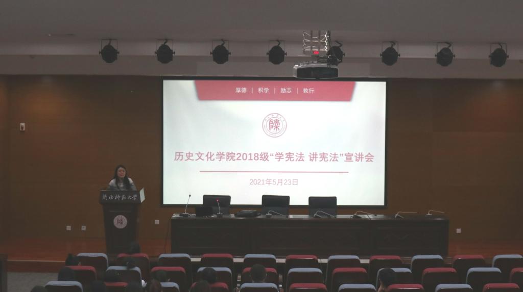 为深入推进宪法学习宣传教育,进一步弘扬宪法精神、普及宪法知识,引导师生做宪法的忠实践行者、积极宣传者,2018级本科生于2021年5月23日17点在第13次晚点名中开展了“学宪法 讲宪法”主题教育活动,活动由2018级本科生兼职辅导员靳雅娜主持开展。