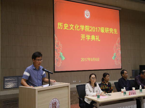 首先,院长何志龙代表学院对顺利考入我校威廉williamhill体育2017级150余位博士、硕士研究生表示热烈欢迎,他希望同学们在陕师大的学习生活中奋发努力,不断提高自身综合能力,为今后的发展打下基础。其次,党委书记杜海斌在讲话中先回顾了今年6月份在举行的学院毕业典礼上安排毕业生走红毯的创新之举,再次向同学们提出殷切期望。接着,学院各位教授相继为新生们提出期望与要求。王晖教授从如何处理博与专的问题对同学们的学习提出切中肯綮的指导,他指出,研究生阶段应从应试学习转变到研究学习的方向上来。王成军教授提出学习研究历史学的一些基本思路,他寄语同学们要向自己学习、向同学、向社会、向老师学习。王玉华教授在发言中首先对我校所处的关中大地和关中文化进行了简要讲解,并吟出自己所作的《游子吟》两首,冀望大家在这片土地上能够汲取关学前辈的精神,“铁肩担道义,妙手著文章”。薛平拴教授回顾自身读书治学经历,勉励2017级研究生要严格要求自己,志存高远,做学术研究要有吃苦的精神准备,宁可劳而不获,不可不劳而获。随后,学院资料室张咏梅老师就学院的图书资料借阅事宜向新生做了详细介绍,让同学们能较快熟悉如何借阅图书资料。2017级博士新生代表宋海群、2015级硕士生代表孔祥辉同学先后发言,强调要在新学期里不忘初心,砥砺前行。最后,副院长李秉忠就学院研究生教育培养、课程设置及学术要求等方面进行简要介绍。