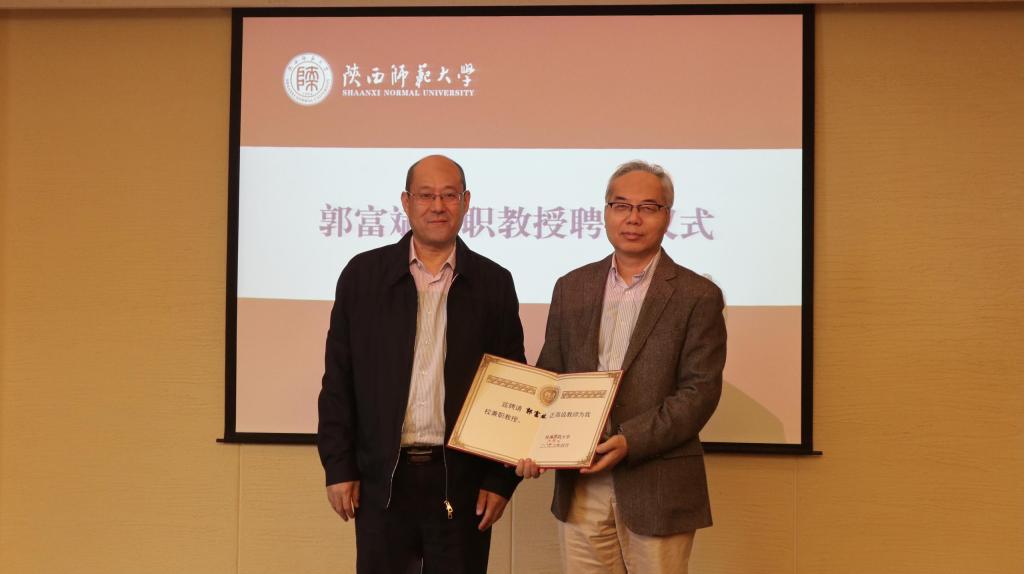 威廉williamhill体育副院长李晨子介绍了郭富斌教授的基本情况,人力资源部部长胡波宣读了学校聘任郭富斌教授的决定,李磊向郭富斌教授颁发了聘书。