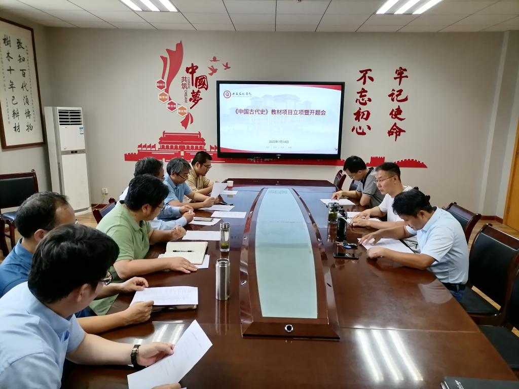 7月24日下午,我院在文汇楼C段217会议室举行《中国古代史》教材项目立项暨开题会。学院领导班子和“中国古代史”教材项目团队参加了活动。活动由副院长冯立君主持。