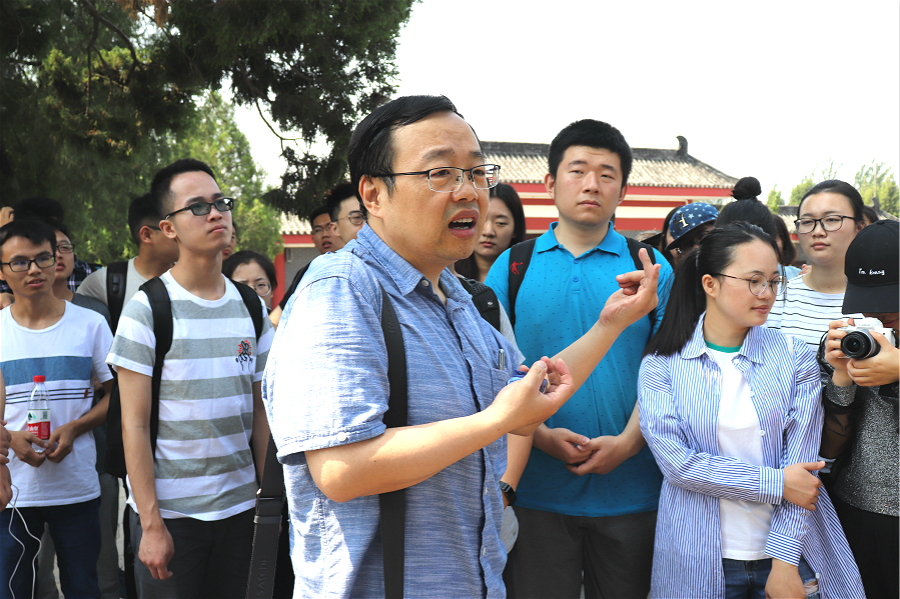 考察首站是永泰公主墓。永泰公主是唐中宗李显的第七个女儿,唐高宗李治和武则天的孙女,其墓穴是用砖砌成的,由墓道、过洞、天井、雨道、墓室构成。于赓哲教授带领同学们一起参观了墓道并进行了细致的讲解,随后同学们自由参观了其他展馆。考察第二站为章怀太子墓。章怀太子名贤,是唐高宗李治和武则天的次子,其墓的结构与永泰公主墓基本相似,且墓中壁画保存基本完好。听完于赓哲教授的耐心讲解,同学们对章怀太子墓的所在位置以及整体布局、基本知识有了大致了解。接着同学们进行了自由参观。考察终站是唐高宗李治与武则天的合葬墓---乾陵,乾陵是唐代“依山为陵”纪念性建筑工程的杰作。于赓哲教授先为大家细致讲解了乾陵的布局构造和历史发展,随后为大家讲解了述圣纪碑、无字碑、“六十一蕃臣像”等石雕石刻。同学们收获颇丰,意犹未尽。