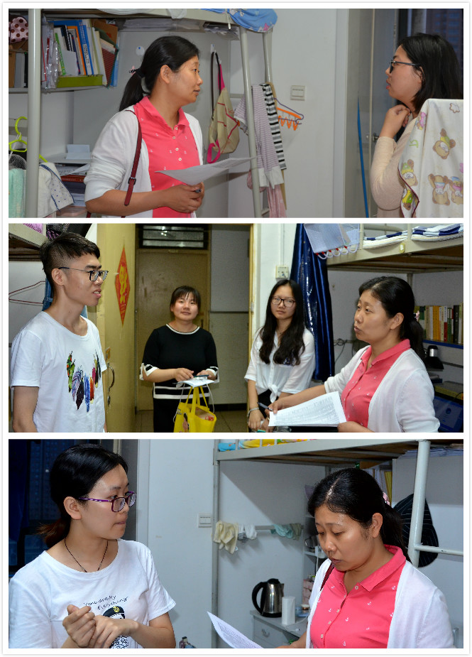 6月3日晚7点,威廉williamhill体育学工组老师走访学生宿舍,慰问我院即将毕业的本科生、研究生。本次走访慰问分为两队进行,我院副书记程蕾,2018级本科生辅导员鲁旭萌,2014级兼职辅导员折祎走访了2014级本科生所在的B区、D区宿舍。我院研究生辅导员洪海安,兼职辅导员李明璇、陈丽媛深入研究生居住的B区、C区和G区宿舍进行走访。
