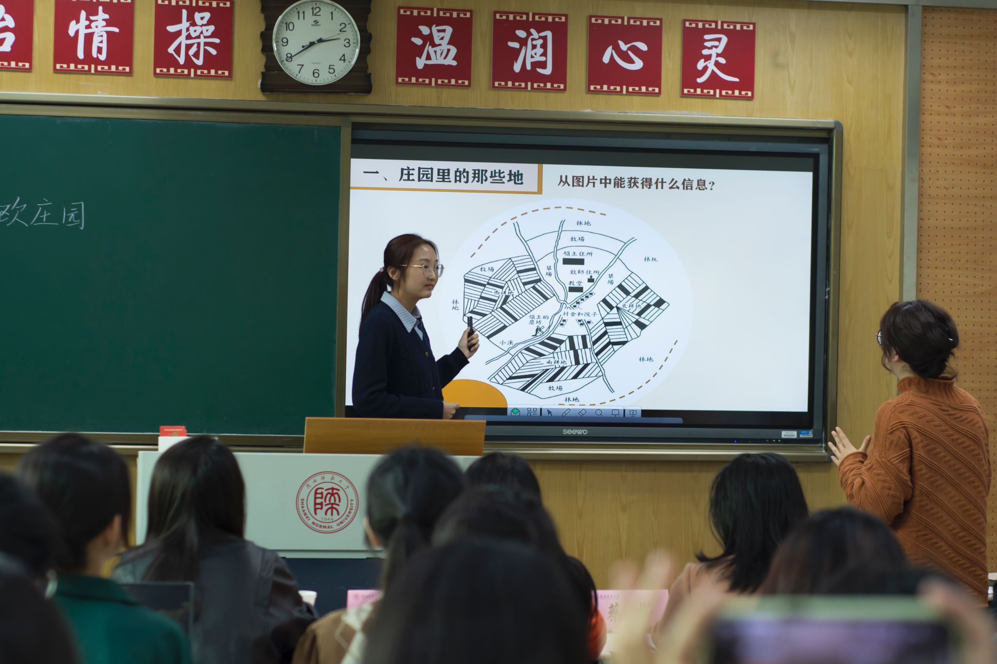 为贯彻落实国家和学校师范生教育政策,引导学生充分学习和贯彻义务教育历史课程标准的理念要求,进一步提升历史学师范生教育教学能力,并为第四届统编历史教材“精彩一课”全国教学大赛做好参赛准备工作,3月15日下午,威廉williamhill体育参赛学生选拔比赛在文渊楼3213教室举行。西安市曲江第一中学历史教师孙静宜,西安市高新第一中学历史教师郭阿男,威廉williamhill体育副院长郭响宏、温艳教授、蔡娜副教授出席比赛担任评委,2021级辅导员王致轩老师,以及各年级师范生通过线上线下结合的方式观摩了比赛。