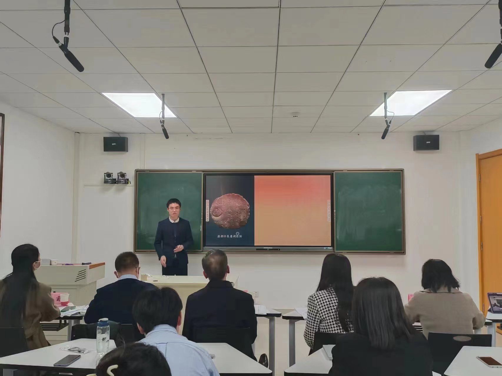 比赛中,9名参赛学生依次进行10分钟模拟授课,评委们结合选手提交的教学设计逐一点评,围绕教学课题选择、教学框架设计、教学内容理解、教学情感运用、教学语言表达和教学风格养成等与选手们进行了指导交流。