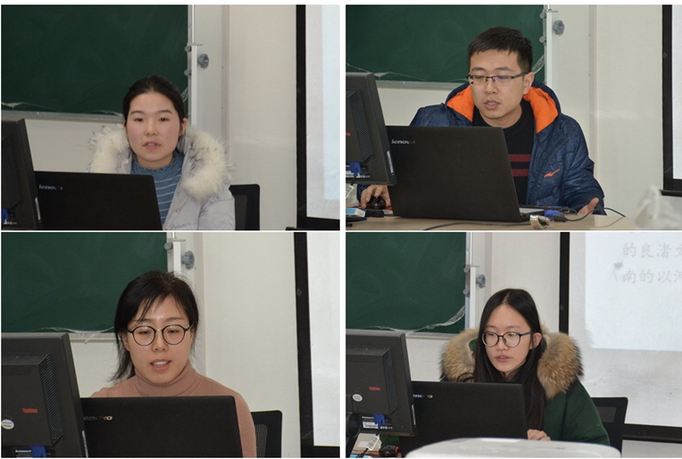 考古组的李晓亭、刘自枝、付文娜、李小娜、李成和沙琛乔演讲的题目分别为海岱地区大汶口——龙山文化陶鬶的发展演变、罗山天湖商代息族青铜礼器、西周青铜器的方向性、西周附耳鼎、先秦马车明器化现象、唐人的宝物观。