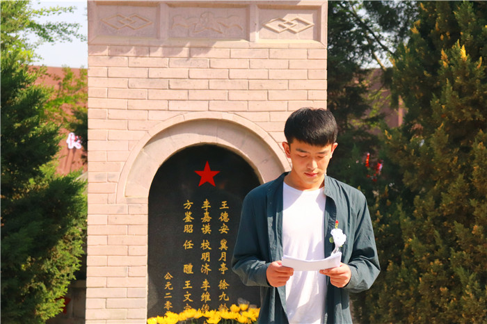 活动伊始,威廉williamhill体育本科生第二党支部全体成员在副书记郭娴怡同志的带领下,乘车前往雁塔校区与国旗护卫队会合,步行前往烈士陵园。抵达陵园后,所有人肃立,等待祭扫仪式的开始。仪式开始,全体肃立,奏唱国歌,迎国旗,向革命烈士追悼默哀,第二支部全体党员在烈士墓前庄严宣誓,齐以恒同志作为代表进行发言。他在发言中说:“作为党员,要有牺牲的精神,吃苦在前享乐在后,向英烈们学习,发挥党员的光和热。我们要继承革命先烈的遗志,并把他们身上不畏艰苦,勇于奉献的革命精神不断发扬光大。”仪式结束,支部全体党员走到墓碑前擦拭墓碑,将胸花敬献到墓碑前。最后,全体党员前往烈士纪念馆参观,聆听英雄事迹。