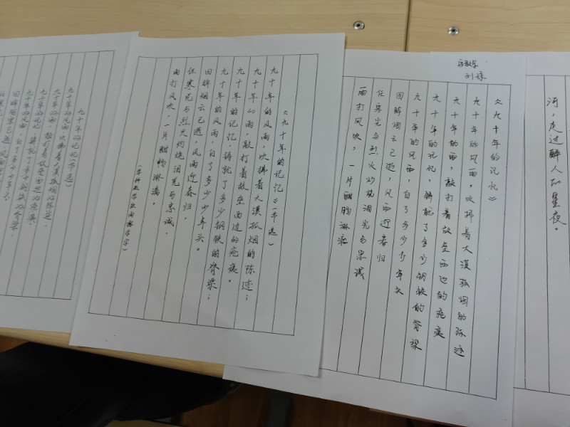 赛后,评委们对各位选手和作品进行了精彩又中肯的点评与建议,获奖的同学也为其它参赛者分享了个人的书写技巧等。最后,评委与参赛者合影留念,三笔字大赛顺利落下帷幕。