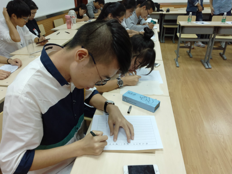 本次大赛于9月24日晚7点在长安校区文渊楼3段举行。党委秘书、团委书记洪海安老师、团委副书记陈丽媛、第十一届研会副主席闫苏苏、2016年三笔字大赛钢笔组一等奖房明鸿等作为评委出席本次活动。参加本次三笔字大赛的有硕士、博士共计50人左右。