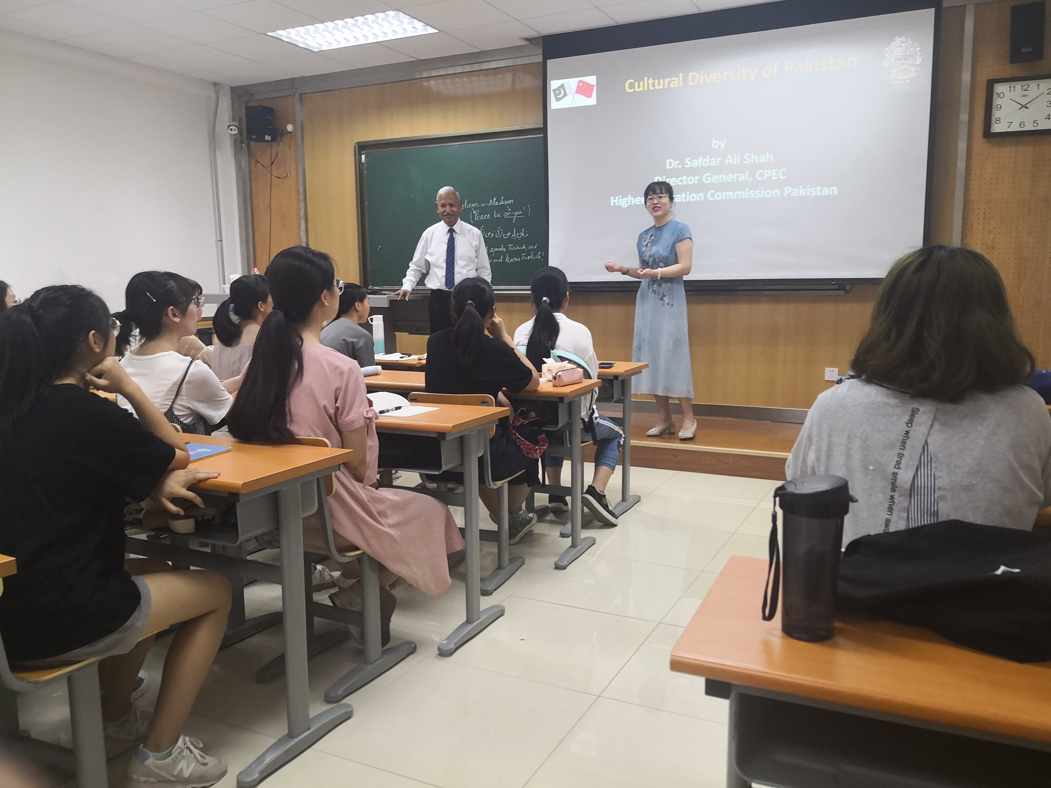 2019年7月15日上午10:10—12:00,在文渊楼1212举行了《巴基斯坦文化的多样性》课程的开班仪式。本次课程特邀巴基斯坦伊斯兰堡高等教育委员会中巴经济走廊总干事Safdar Ali Shah博士讲授,我院郭艳利副教授担任助教。