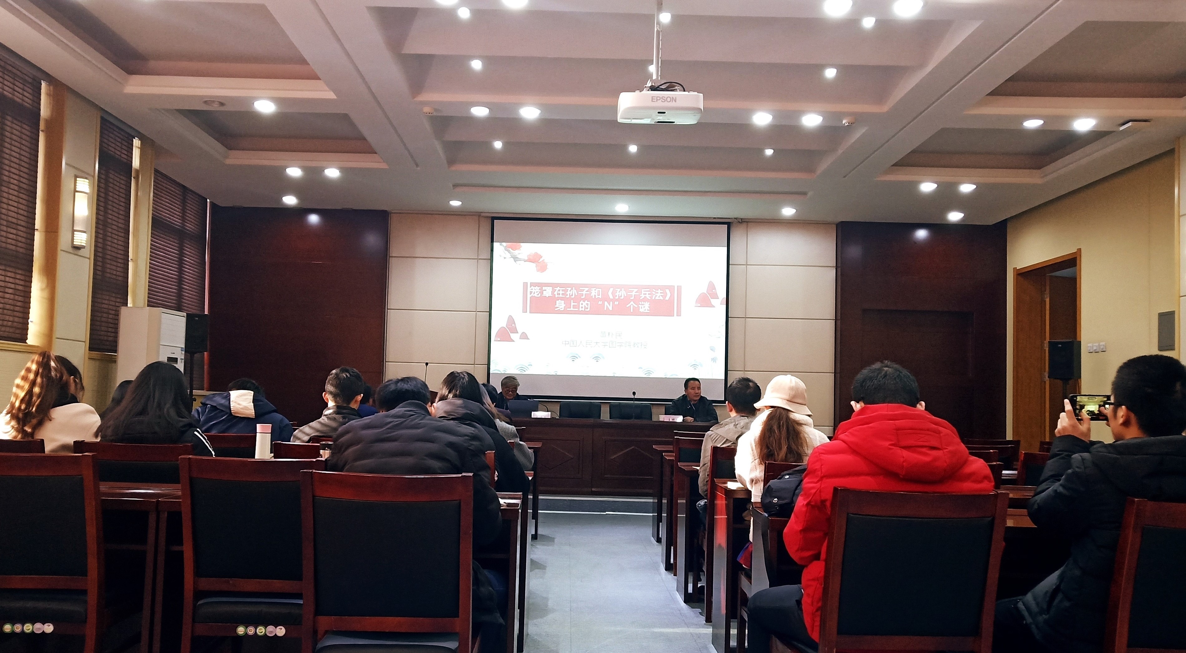 黄朴民教授为中国人民大学国学院教授、执行院长,兼任中国史学会理事兼副秘书长,《国学学刊》执行主编。主要从事先秦两汉政治思想与华夏古代军事文化的研究,是国内著名的军事史专家、《孙子兵法》研究专家,发表论文九十余篇,并撰有许多优秀著作。本次讲座有助于加深我们对《孙子兵法》的认识,并进一步学习到史学研究的方法。