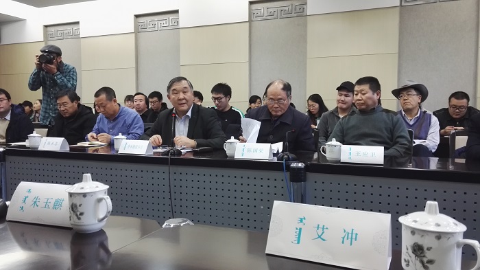 下午两点三十分,“2019年度中蒙联合考察队燕然山铭摩崖及相关遗迹再调查成果座谈会”在内蒙古大学学术会议中心3号会议室按时召开。五位外地高校与博物馆的学者与考察队中方学者举行开放坦率的交流座谈。首先,由考察队的三位中方队员陈国荣、高建国和李哲做了第二次野外考察成果专题汇报。五位外校学者分别表达了扩大调查成果学术影响、继续深入研究的愿望与建议。艾冲教授从边疆历史军事地理视角切入,简述窦宪北伐战争的行军路线、作战区域,及其与《封燕然山铭》(伊尼勒海尔罕山摩崖石刻)的空间关系,提出应从秦汉时期泰山封禅的祭祀天地仪礼与设施、史书对战争期间将帅封禅漠北名山的部分缺载剖析,窦宪在燕然山区举行祭祀天地的封禅活动是不争的史实。因此,伊尼勒海尔罕山摩崖石刻应称作“封燕然山铭”无疑,应继续深入研究与《封燕然山铭》(伊尼勒海尔罕山摩崖石刻)相关的学术问题。至下午六点,座谈会圆满结束。