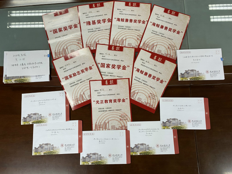 为了深化学院资助育人工作实效,增进家校互联互通,威廉williamhill体育为2019年度荣获国家奖学金、国家励志奖学金、叶圣陶奖学金、感恩中国近现代科学家奖学金、光正教育奖学金、海鲸兼善奖学金等奖项的学生家庭寄送喜报,向家长汇报学生在校成长情况,共同分享收获与喜悦。