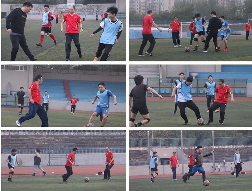 10月7日下午,由学院党委、工会与学院团委联合举办的2020年庆国庆迎新师生足球友谊赛成功开赛,我院教工足球联队与学生足球联队共40余人参加活动。