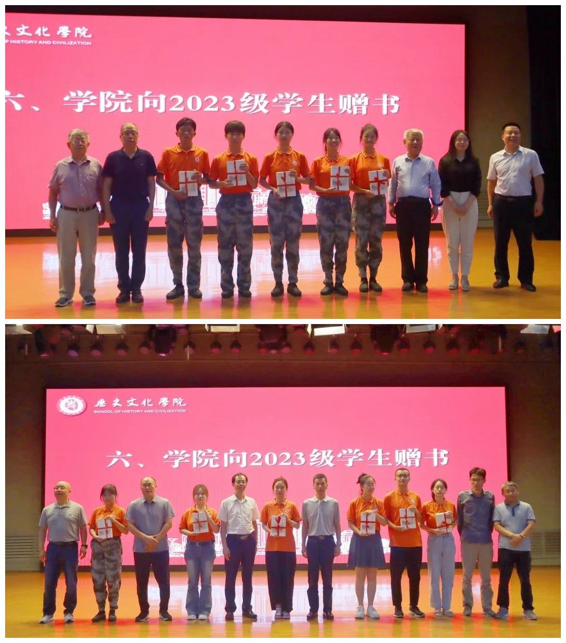 会上,学生代表为与会教师赠送了鲜花,送上了教师节的诚挚祝福。孙伟书记和教师代表为2023级新生代表赠送了学院资助出版的专著等书籍。