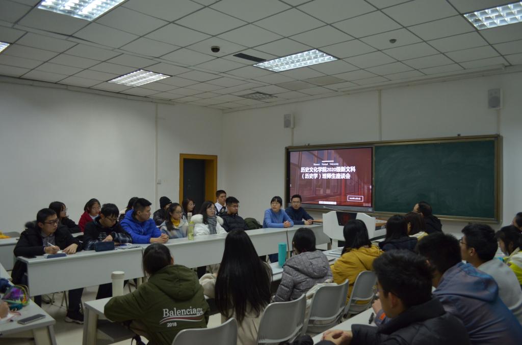 为进一步推进历史学(新文科班)建设,让学生合理规划大学生活,了解学生的思想动态和大学学习困惑,威廉williamhill体育2020级新文科班师生座谈会12月1日晚七点在雁塔校区教学三楼3311举办。历史学(新文科班)项目主任郭艳利教授、班主任郭响宏副教授、辅导员师瑞青老师以及2020级历史新文科实验班全体同学参加了座谈会,座谈会由师瑞青主持。