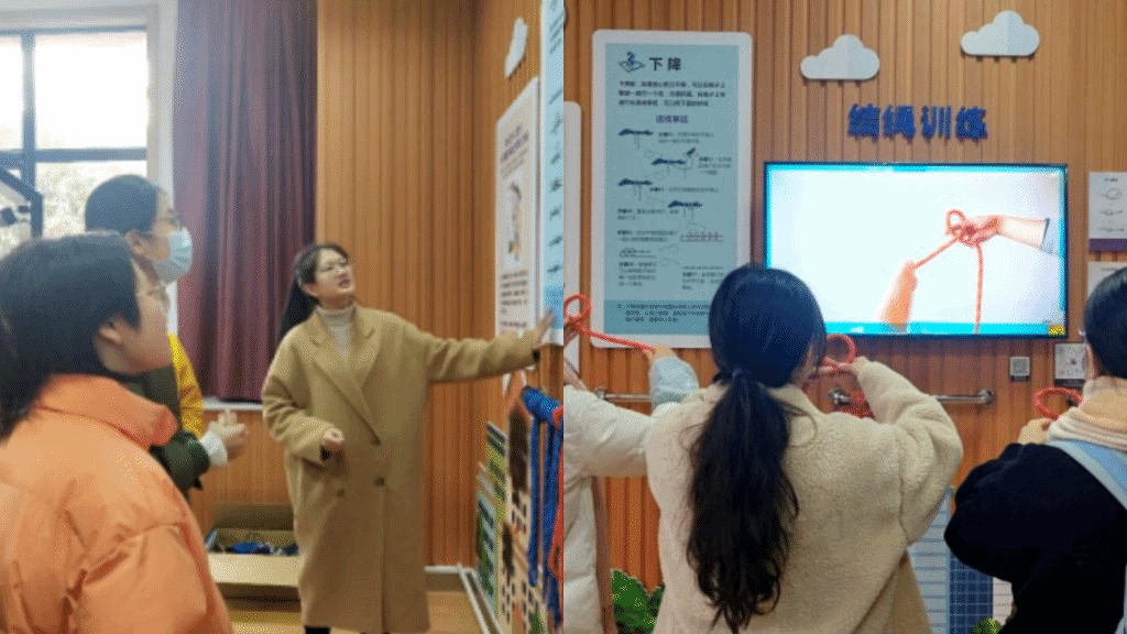 首先,VR超感体验室的志愿讲解员利用体验室里的灭火实训系统,向同学们讲解了灭火器的使用方法和注意事项,通过简单的操作让同学们掌握消防技巧。接着志愿者讲解员带领同学们来到下一个体验区学习各种紧急救助的结绳、掌握不同场景下正确的结绳方法。主要有单结、多重单结、活索、双重单结等结绳方法,让同学们在灾难突袭时多一种逃生技能。在这个过程中,同学们热情高涨,积极主动跟随视频学习结绳方法,掌握逃生技能。刘旭辉也和同学们一起参与到安全教育活动中,并鼓励大家积极参与,以期达到人人受益的良好效果。
