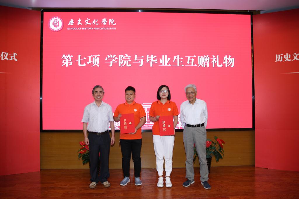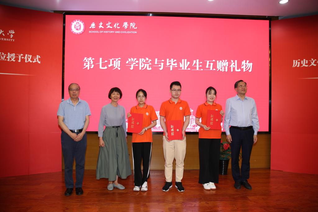 教师代表徐赐成教授以“用本心温暖世界”为题,为毕业生讲授最后一课。他谈到,青年一代通过读书而步入社会,肩负用知识改造世界的使命和责任,因此要“知本心”“存本心”“用本心”,勉励毕业生们要持守本心、发明本心,用本心温暖世界,赢得光明的未来。本科毕业生代表、2018级历史学(卓越教师实验班)杨馥畅同学表示,求学四载,她将不忘老师教诲,不负母校栽培,不愧历史使命,勇担时代重托。研究生毕业生代表、2019级中国史专业陈飞飞同学分享了自己的漫漫求学路,并向学院所有教师送上美好祝福。