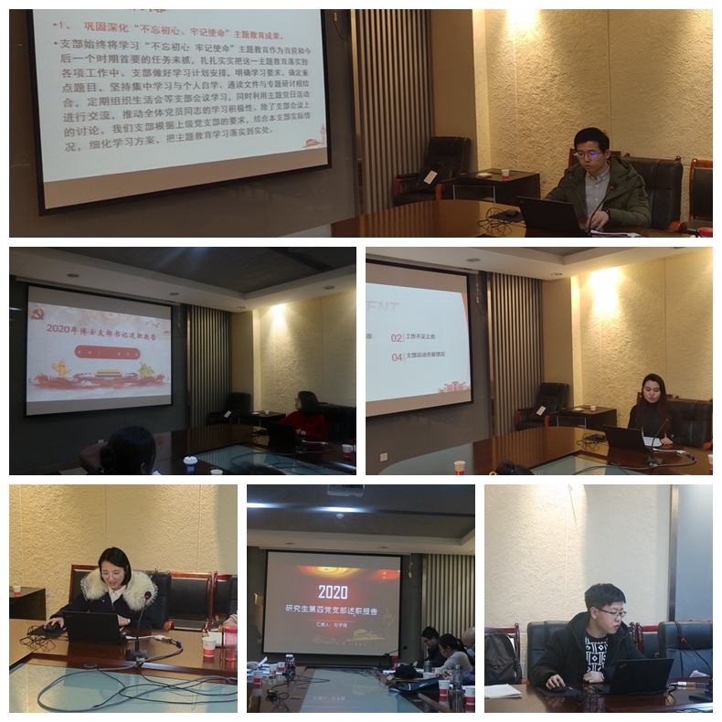 述职评议答辩分为两个阶段,第一个阶段举行教师支部书记述职答辩,共有10个支部参加;第二阶段举行学生支部书记述职答辩,共有12个支部参加。参加述职的师生支部来自学院党委四家单位,述职主要围绕巩固深化“不忘初心、牢记使命”主题教育成果情况、履行抓党建主业主责情况等七个方面来进行,各支部都能客观地、全面地总结了2020年度本支部工作开展的具体情况,认真剖析总结工作中存在的问题与不足,并对今后支部党建工作的思路提出整改措施。评委对所有述职答辩成员进行提问,并根据述职情况进行测评。