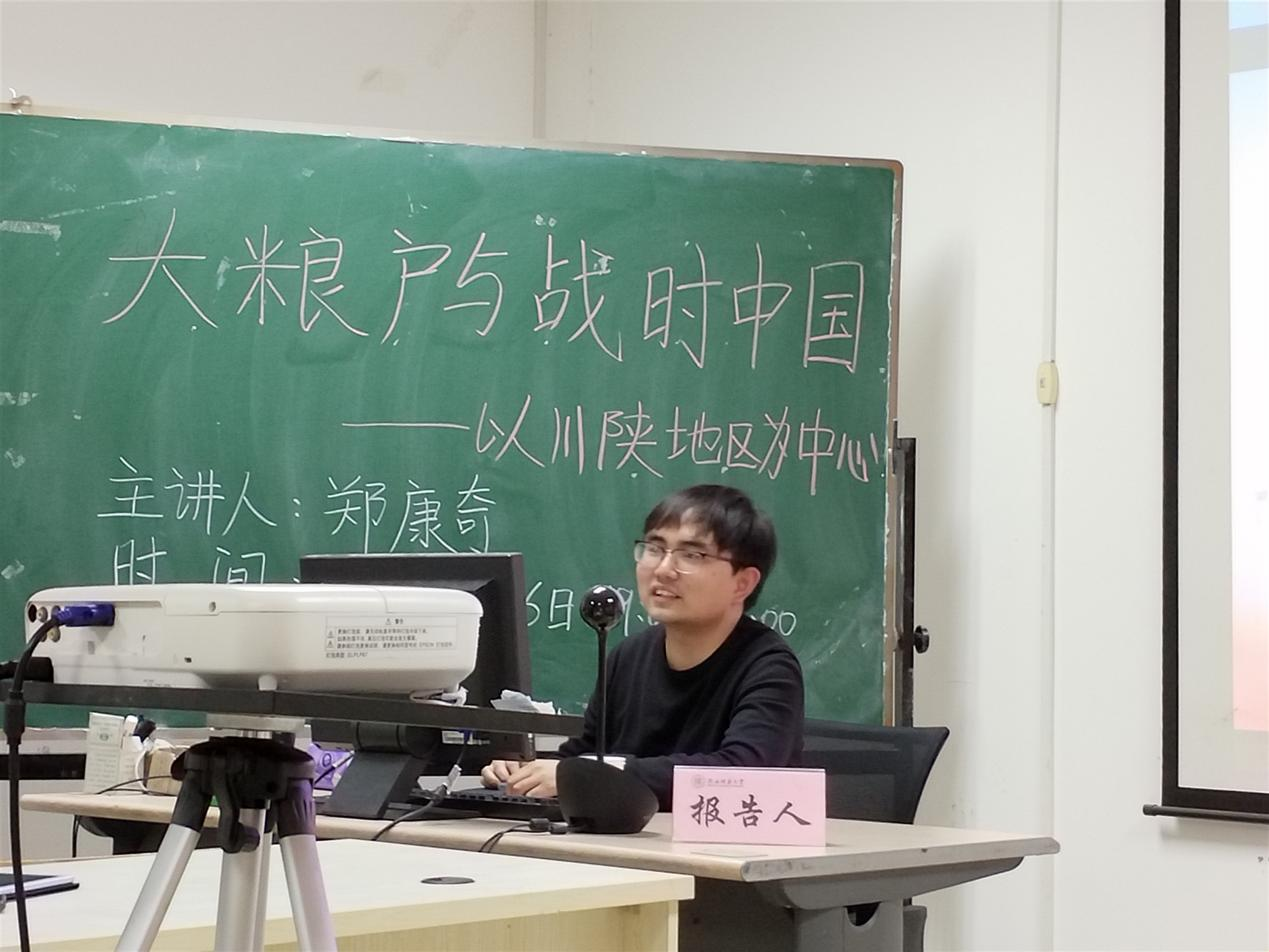 2021年3月26日晚,我院研究生“日新论坛”第一百五十八讲在长安校区文汇楼C段501室顺利举办。本次论坛讲座的题目为《大粮户与战时中国——以川陕地区为中心》,主讲人为2018级中国近现代史方向硕士研究生郑康奇,评议人为中国近现代史方向博士生导师温艳教授。本次讲座由温艳教授主持。