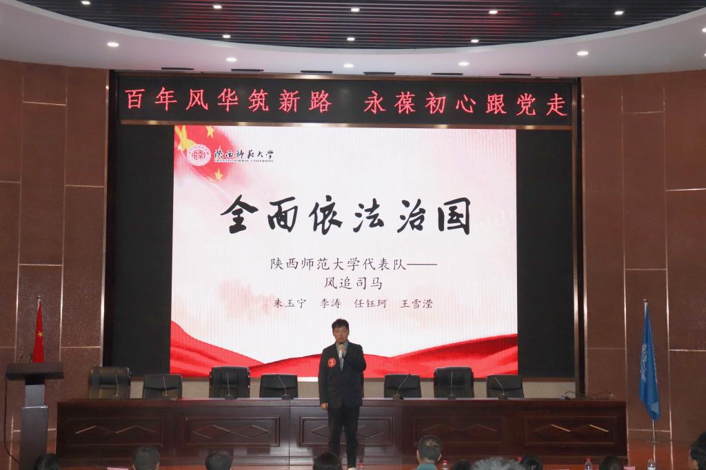 我校、西北大学、西安外国语大学、西安邮电大学、西北政法大学、西安财经大学六支代表队进行最终决赛。竞赛内容涵盖《中国共产党章程》《中国共产党纪律处分条例》《习近平谈治国理政》《习近平新时代中国特色社会主义思想学习纲要》,以及中国共产党简史、时事政治等。本次赛事分为“小试牛刀”、“光影印象”、“华山论剑”、“博闻强记”、“挥斥方遒”五个环节,根据题目类型及难易程度,各环节设有不同的计分方式,最终成绩按照积分高低进行排名。