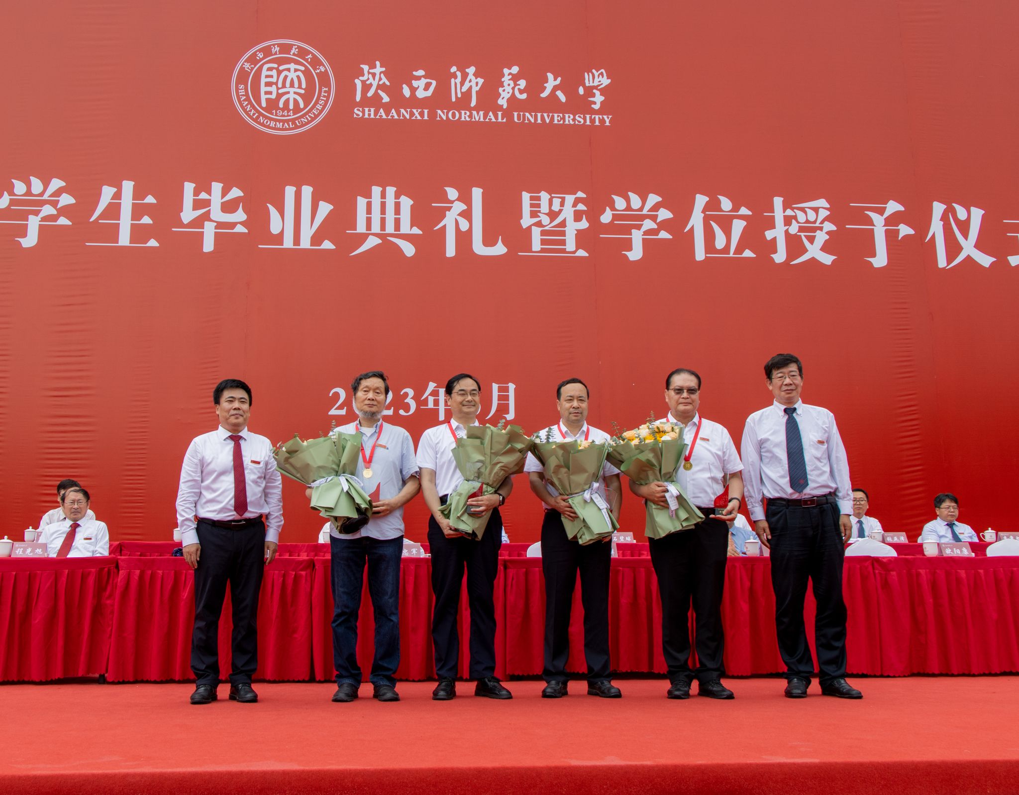 在刚刚结束的陕西师范大学2023届学生毕业典礼暨学位授予仪式上,我院优秀院友陈峰教授获评学校第十届“杰出校友”,学校李忠军书记、游旭群校长为陈峰教授颁发了杰出校友奖杯和奖章。