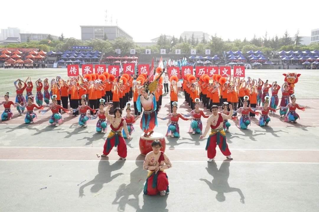 开幕式上,以“千年丝路”为主题设计,学院党委所属四家单位师生组成的代表队迈着整齐步伐经过主席台。师生们身着具有学院特色的服装,共同呼喊出“传承师者风范,赓续历史文脉”的响亮口号,赢得了会场四面八方的掌声与欢呼。
