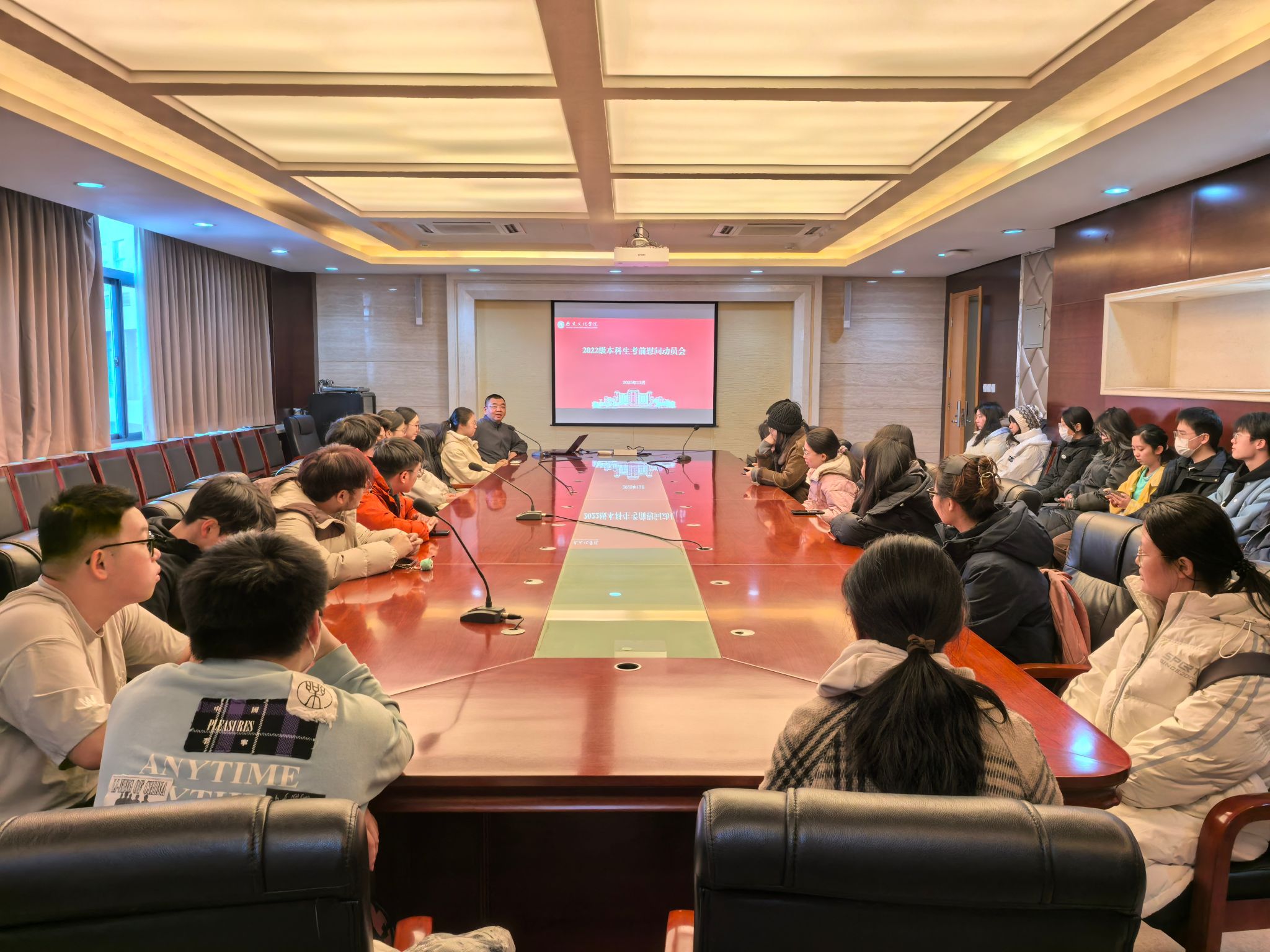 12月19日,学院为即将应考的2026届考研学子举办慰问动员会。学院党委副书记李晨子与45名备考学生齐聚一堂,为大家加油鼓劲。