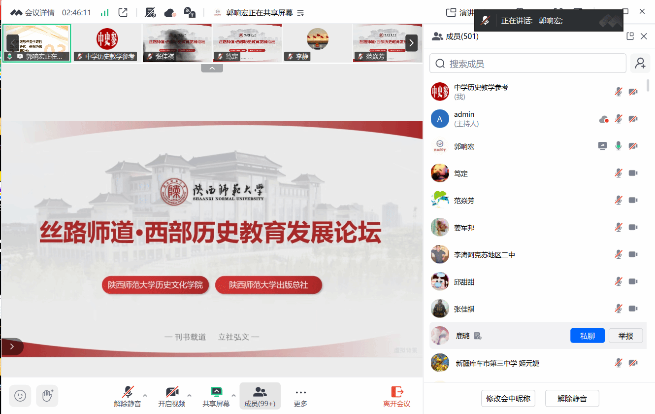 本次论坛有效搭建了高校、中学、教研机构与期刊出版单位“四位一体”的协同对话平台。高校学者带来前沿理念,教研专家贯通理论与实践,一线教师分享宝贵经验,高校青年学子展现创新活力,出版单位则推动成果转化与传播。这种跨领域、多维度的深度交融,为破解西部历史教育发展瓶颈、构建发展共同体注入了强劲动力。“丝路师道”寓意传承师道、培育新人的时代责任。本次论坛的成功举办,不仅是一次学术与智慧的激荡,更是一次使命与情感的联结,为西部历史教育的创新发展积蓄了力量。